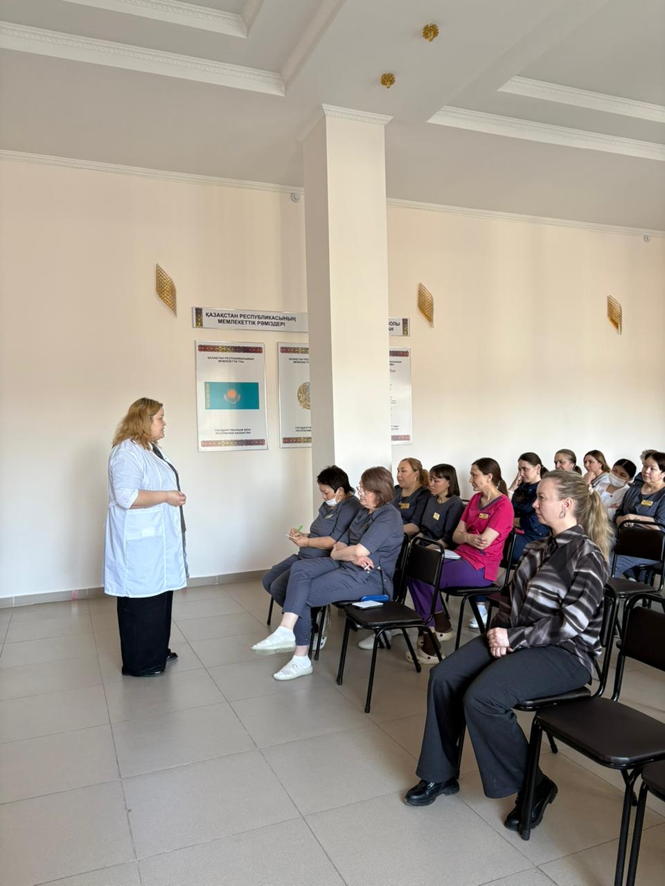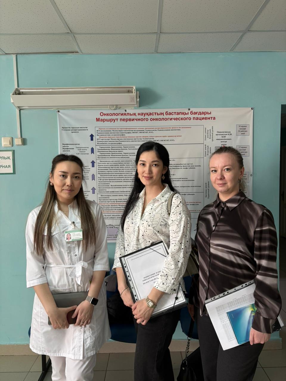 л осуществлён выезд в поликлиники №2 и №4 г. Костанай с оказанием организационно-методической помощи. В рамках визита проведена лекция для сотрудников смотровых кабинетов и регистратуры, посвящённая вопросам онконастороженности и проведению скрининга населения в соответствии с действующими нормативными приказами.